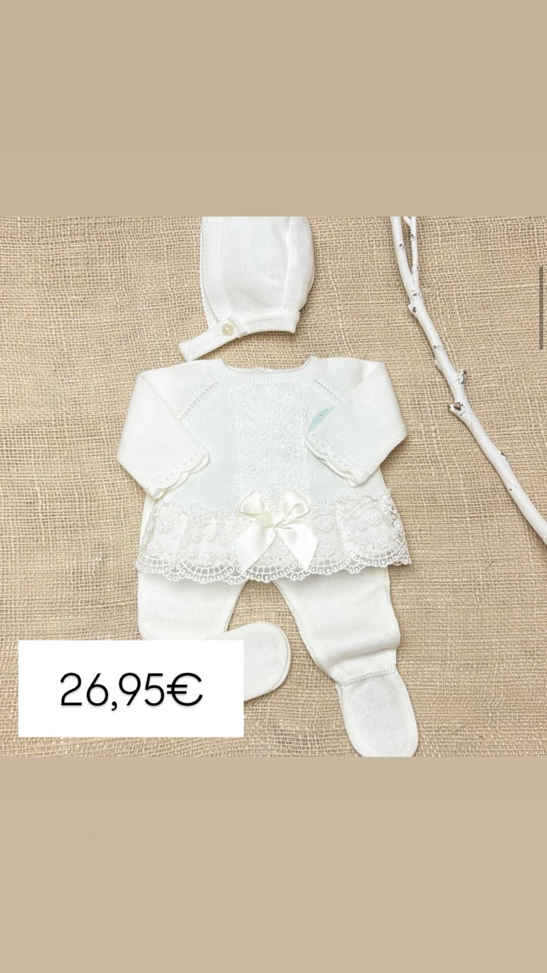 Jersey, polaina y capota en hilo marfil con encaje